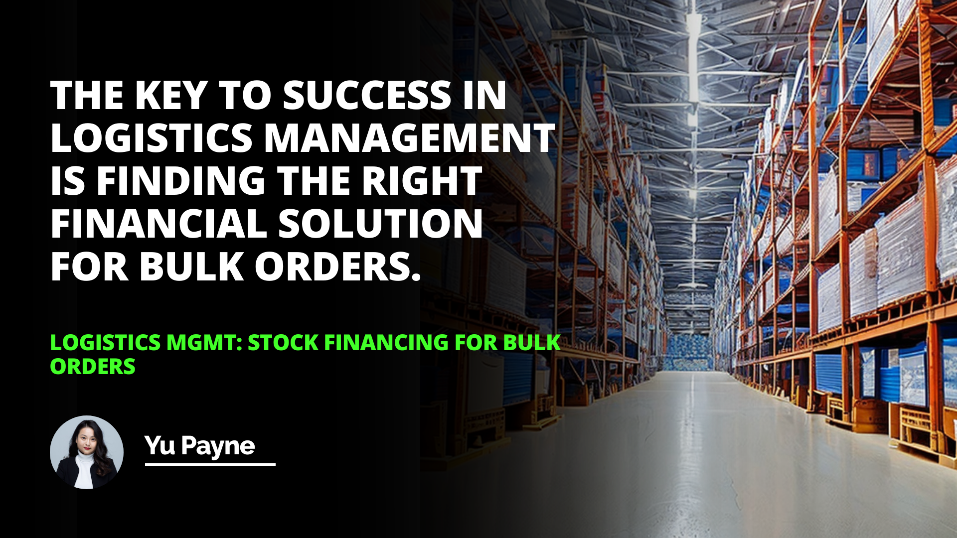 The key to success in logistics management is finding the right financial solution for bulk orders.